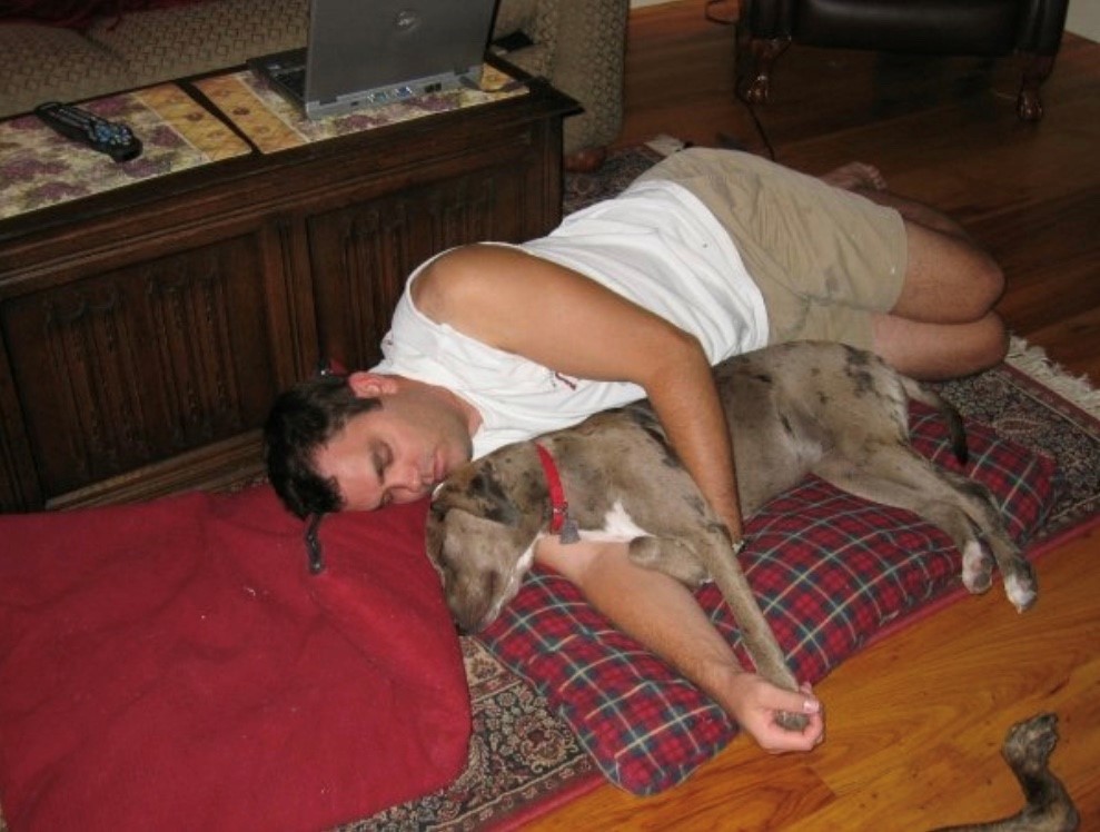 The craziest story of those two involved breaking windows. The house was on a cul-de-sac so I’d let the dogs run around off the leash. The neighbors had a window that went all the way down to the ground. Sterling would run to the window in a full sprint and hit the brakes right as she got there. She’d have her nose inches from the window and just go crazy barking at that dog. I mean just go at each other.