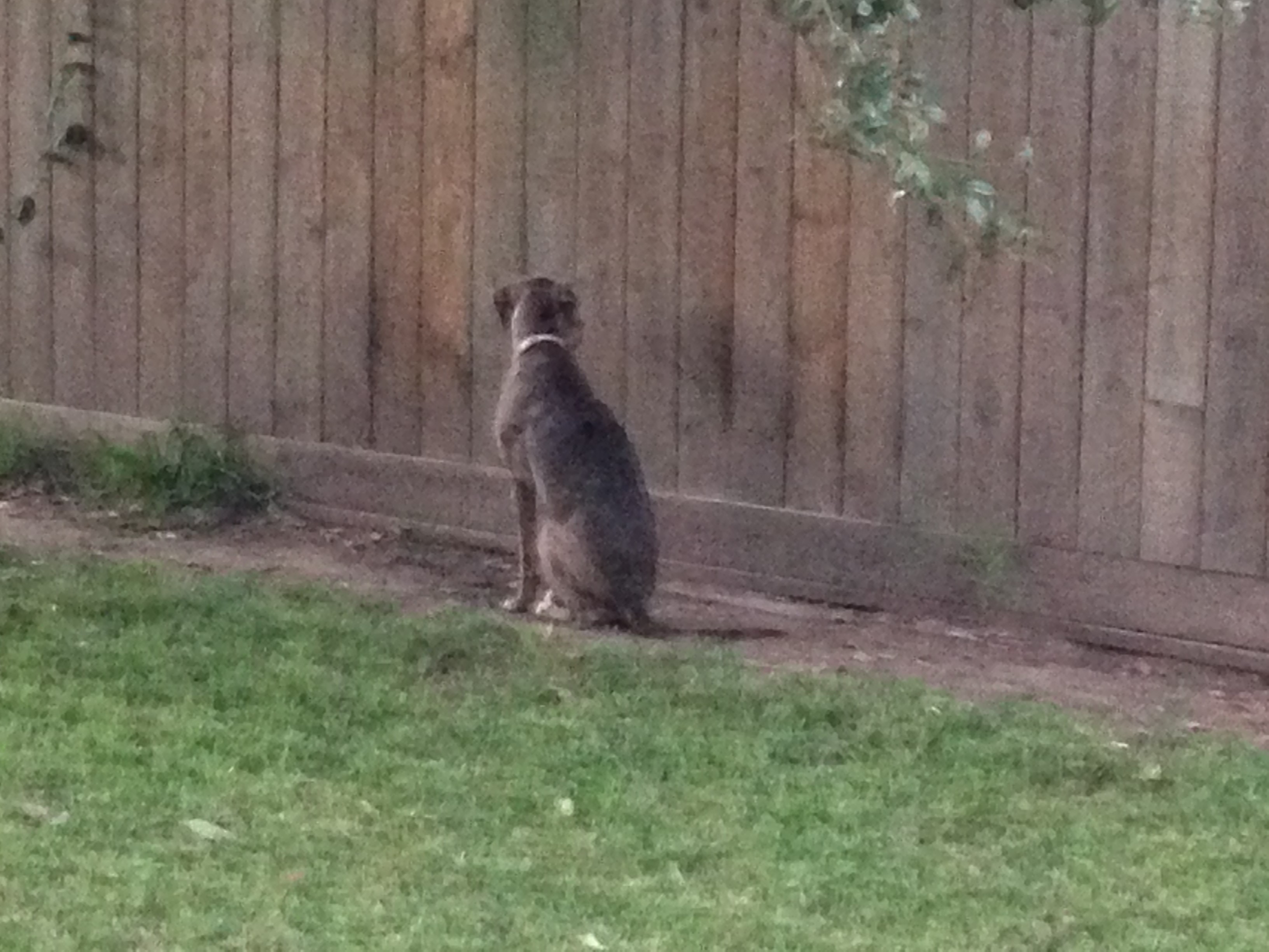 The house before I moved in with Kelly was probably the worst. The dog lived next door and there was a wooden fence between us. Sterling would go outside and just sit at the fence peering between a crack waiting on that dog to come out. Seriously. She’d just sit there forever waiting.